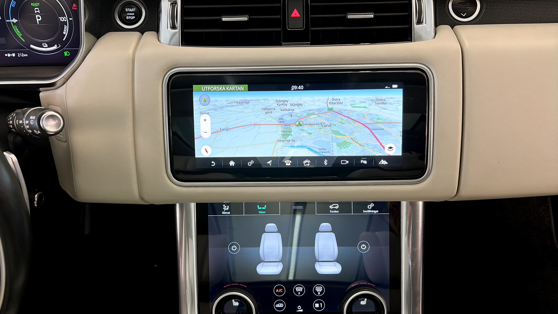 Interiören bjuder på helskinnklädsel i perforerat läder, elstolar fram (förarstol med minne), rattvärme, sätesvärme och komfortfjädring. Panoramaglastak/taklucka, tonade och värmeisolerande rutor höjer premiumkänslan ytterligare, och Meridian Premium-ljudsystemet står för ljudupplevelsen.