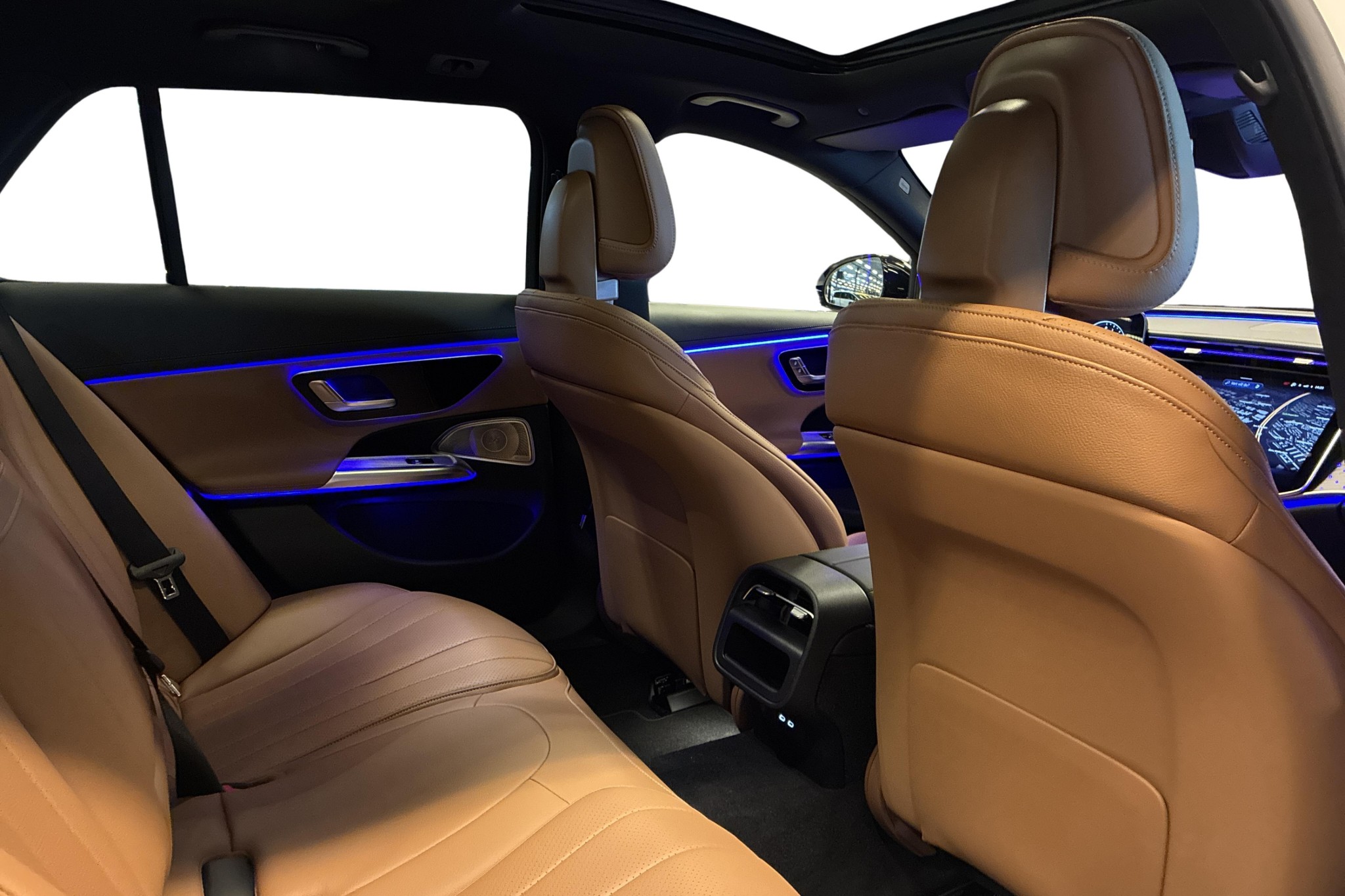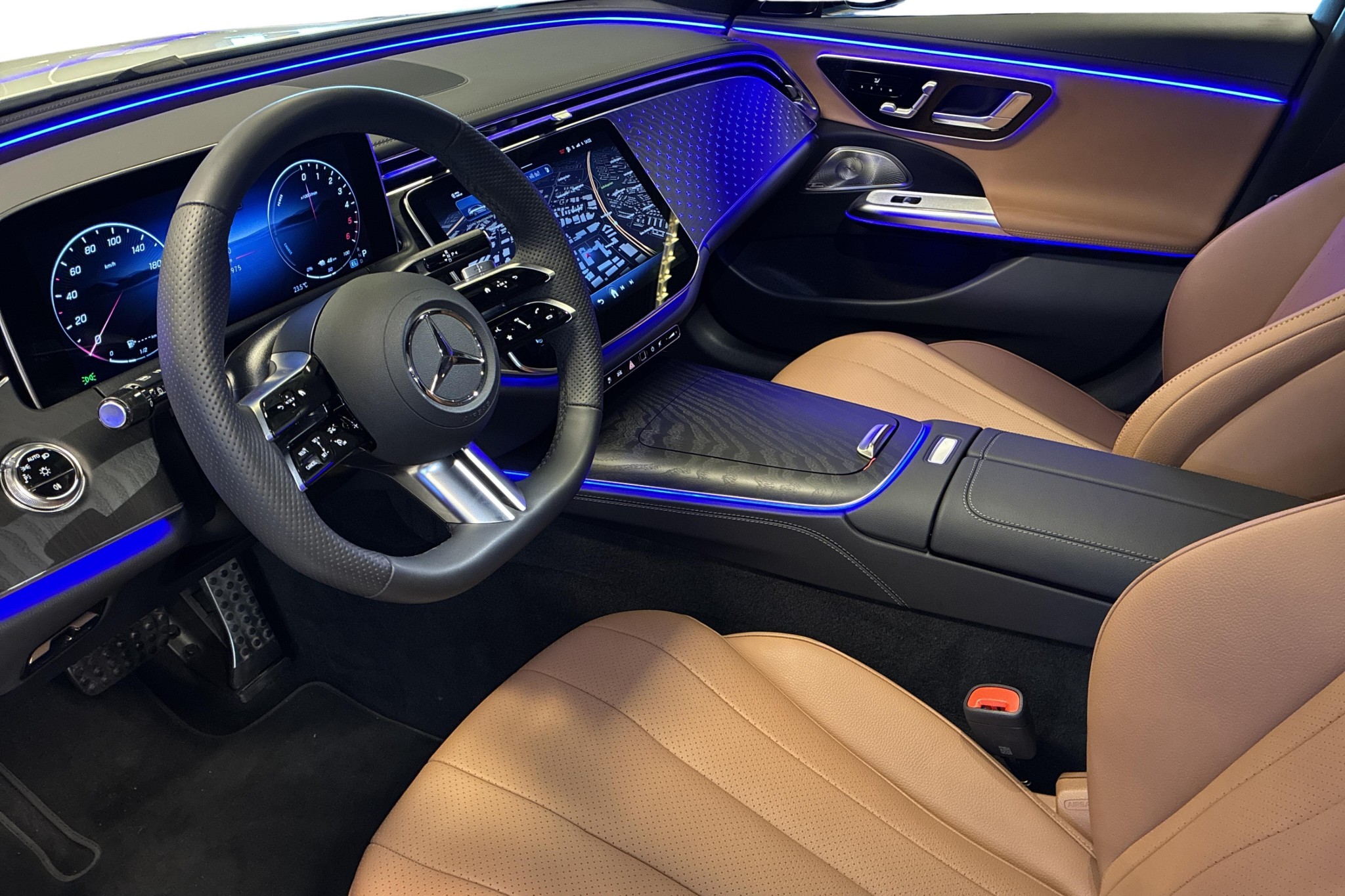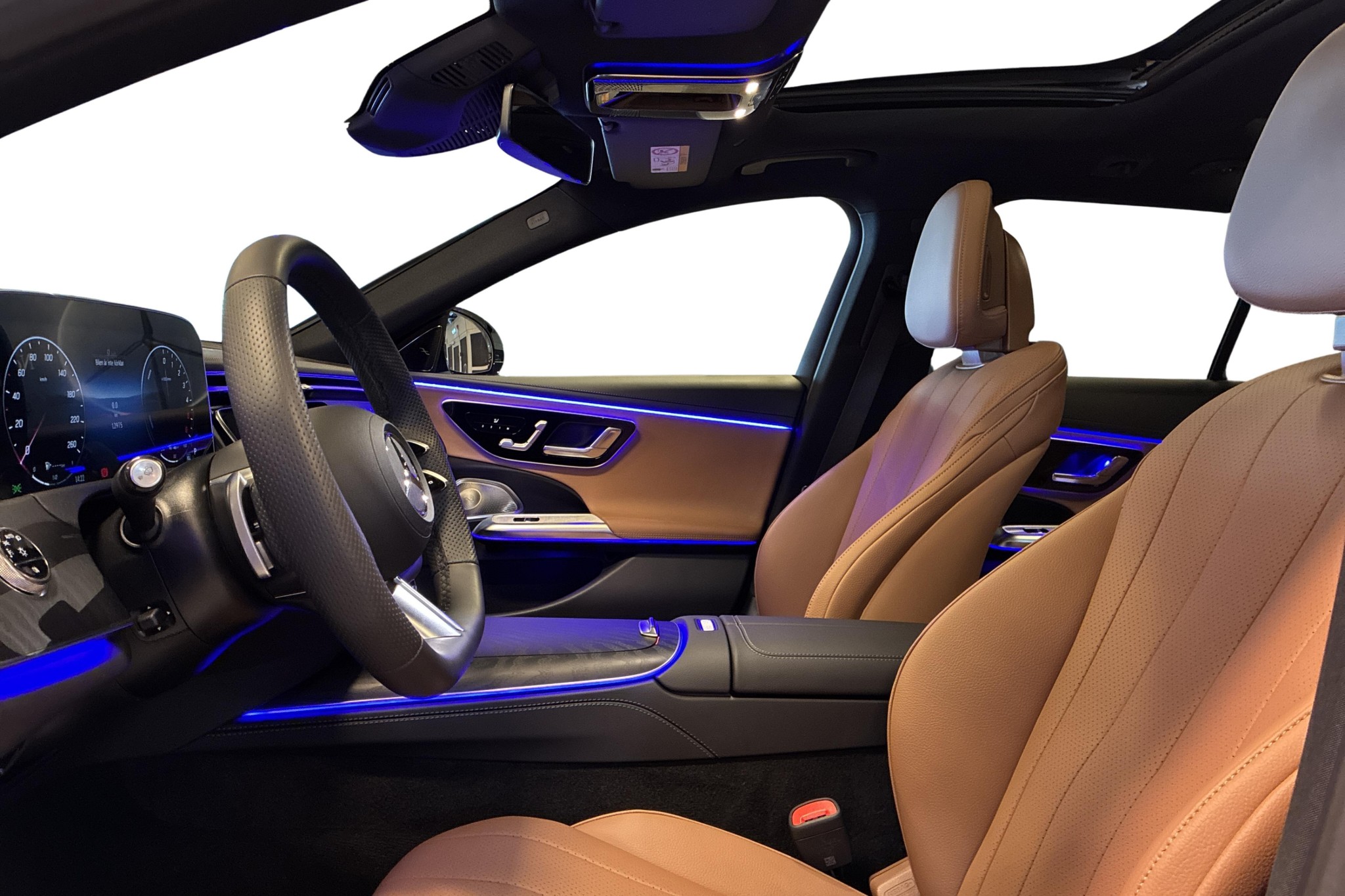 Utrustad med AMG Line och Night Package får den en sportig och sofistikerad look, komplett med panoramatak, Burmester-ljudsystem och elinfällbar dragkrok. Insidan bjuder på komfortstolar klädda i tonkabrun/svart konstläder, avancerad klimatanläggning och MBUX multimediesystem med navigation – allt du behöver för en smidig och bekväm resa.