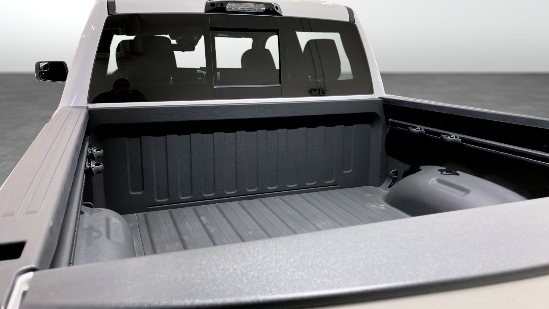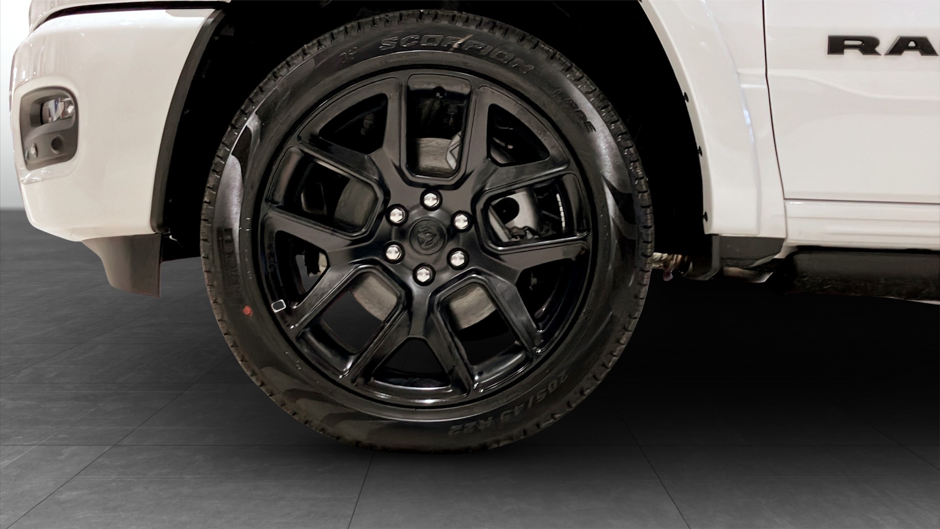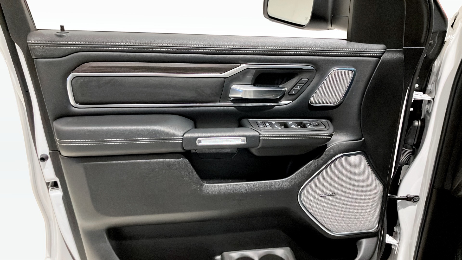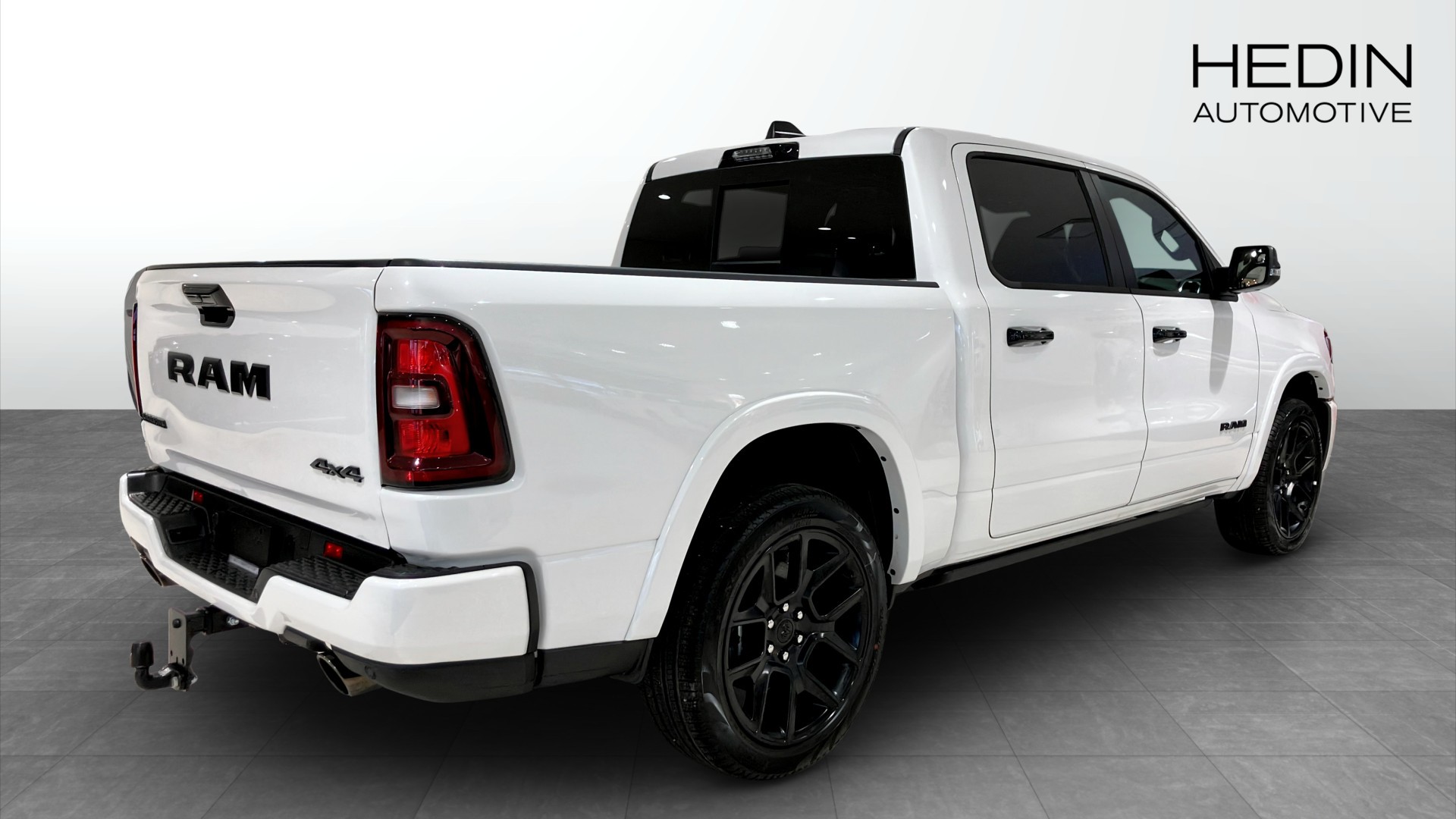 RAM 1500 Laramie Crew Cab årsmodell 2025 i vit kulör – en kraftfull och välutrustad pickup för dig som vill ha både arbetskapacitet och hög komfort.