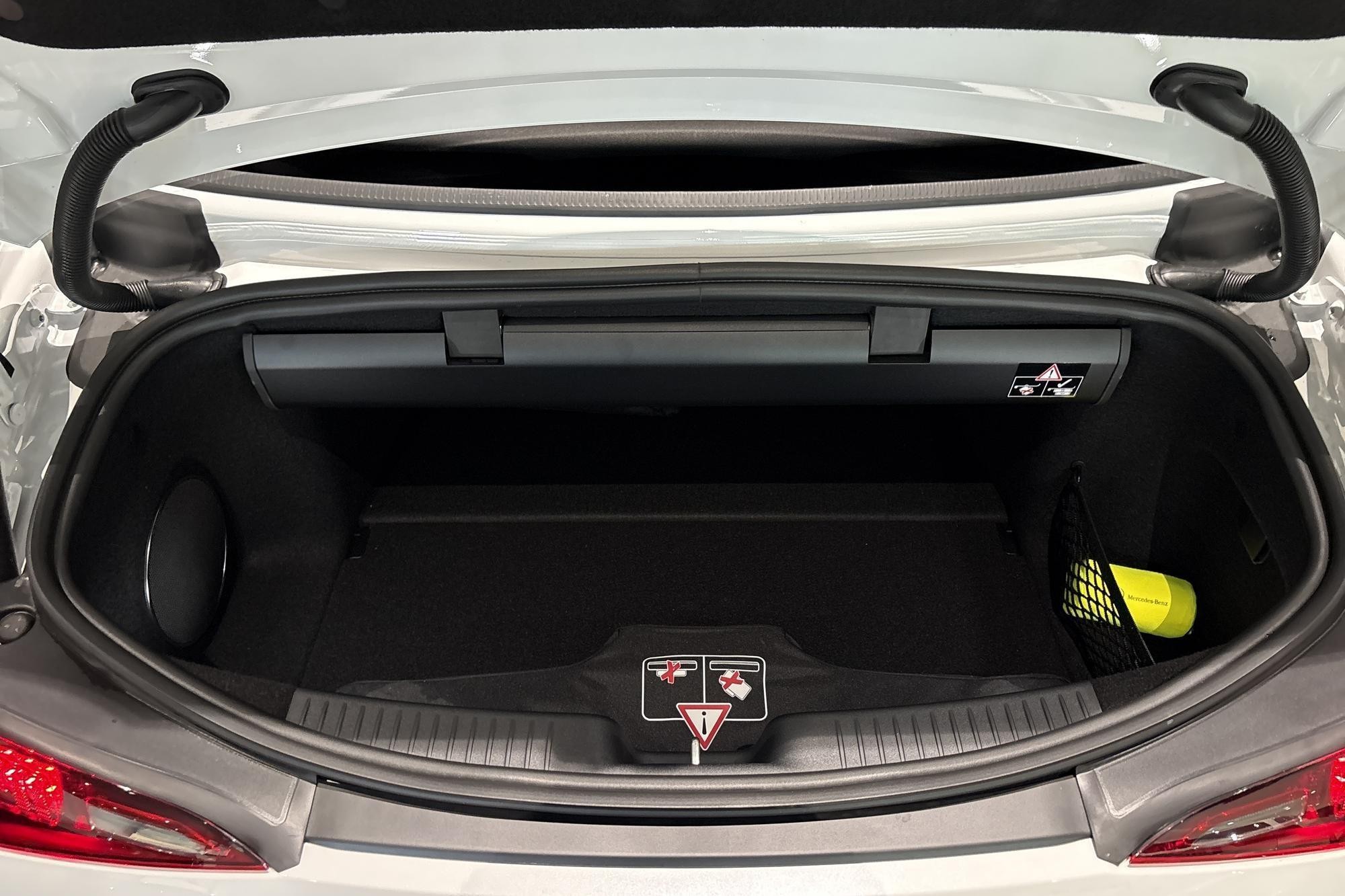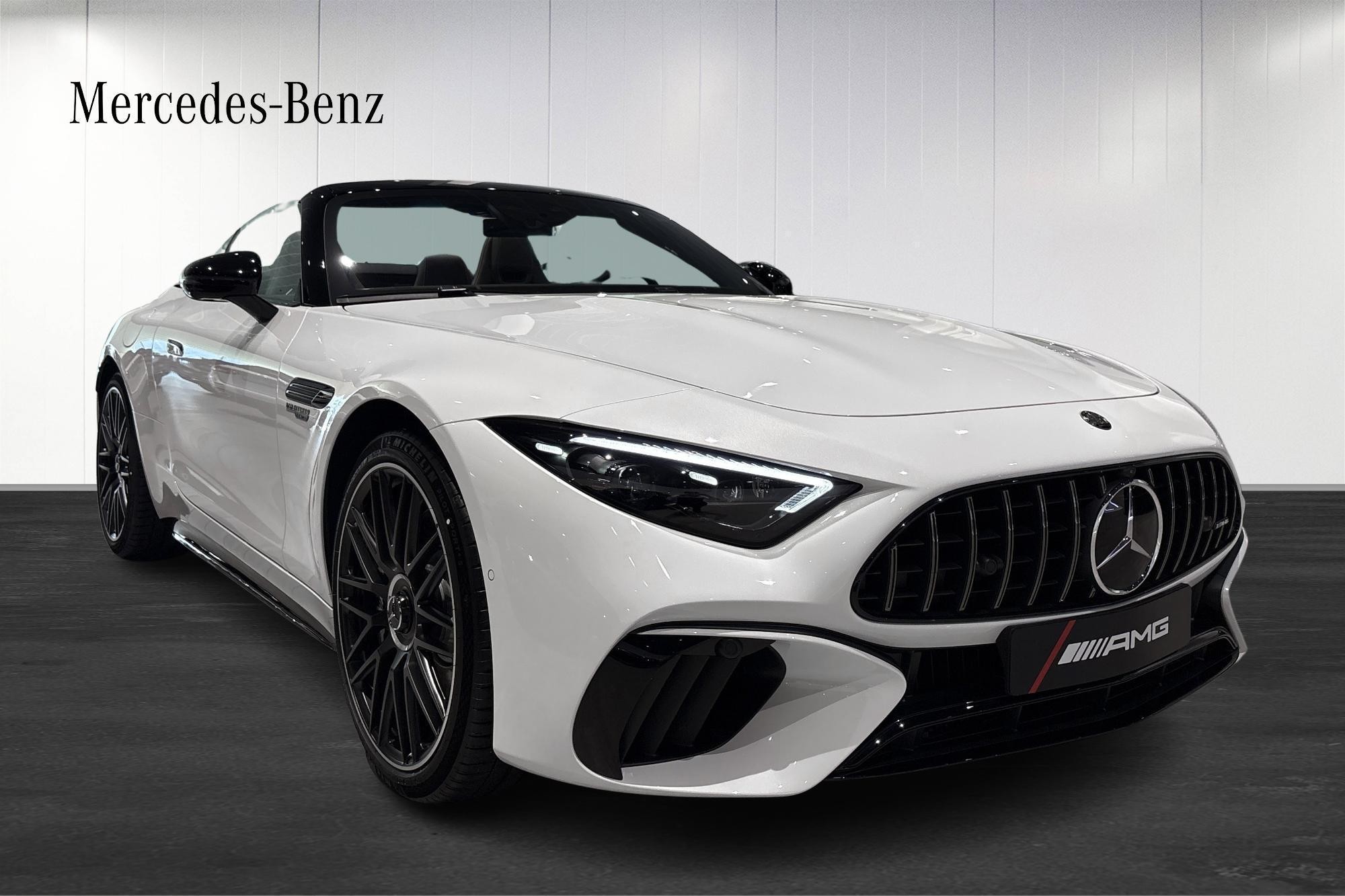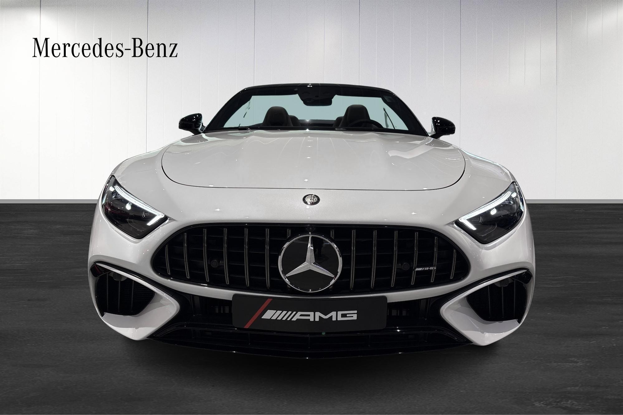 Bilen är elegant speccad i MANUFAKTUR opalitvit bright med AMG Night Package I & II, svartlackade bromsok, AMG Dark Light Package och smidda AMG 10-ekersfälgar. Klassisk svart tygsufflett förstärker den tidlösa cabrioletlooken.