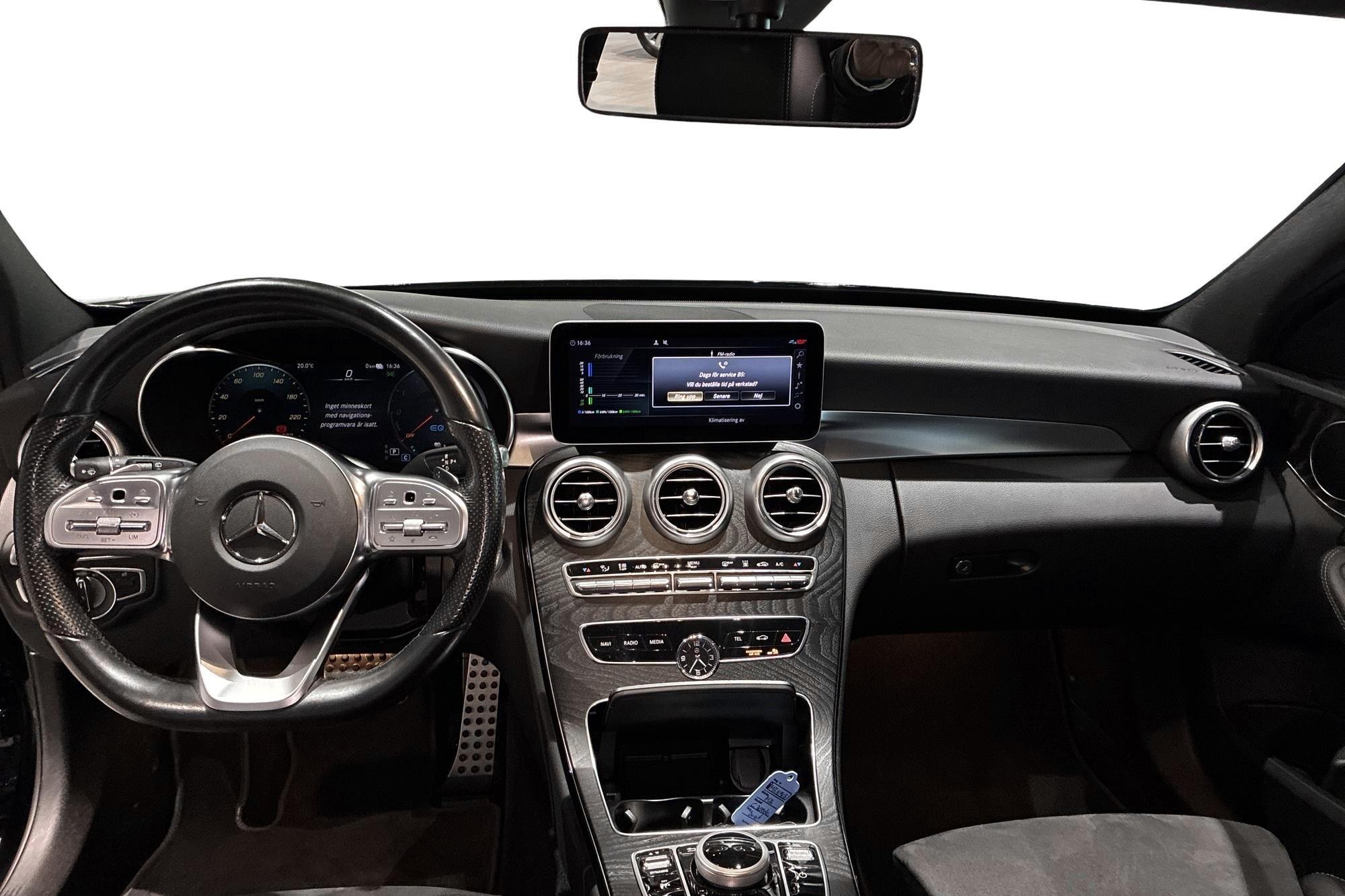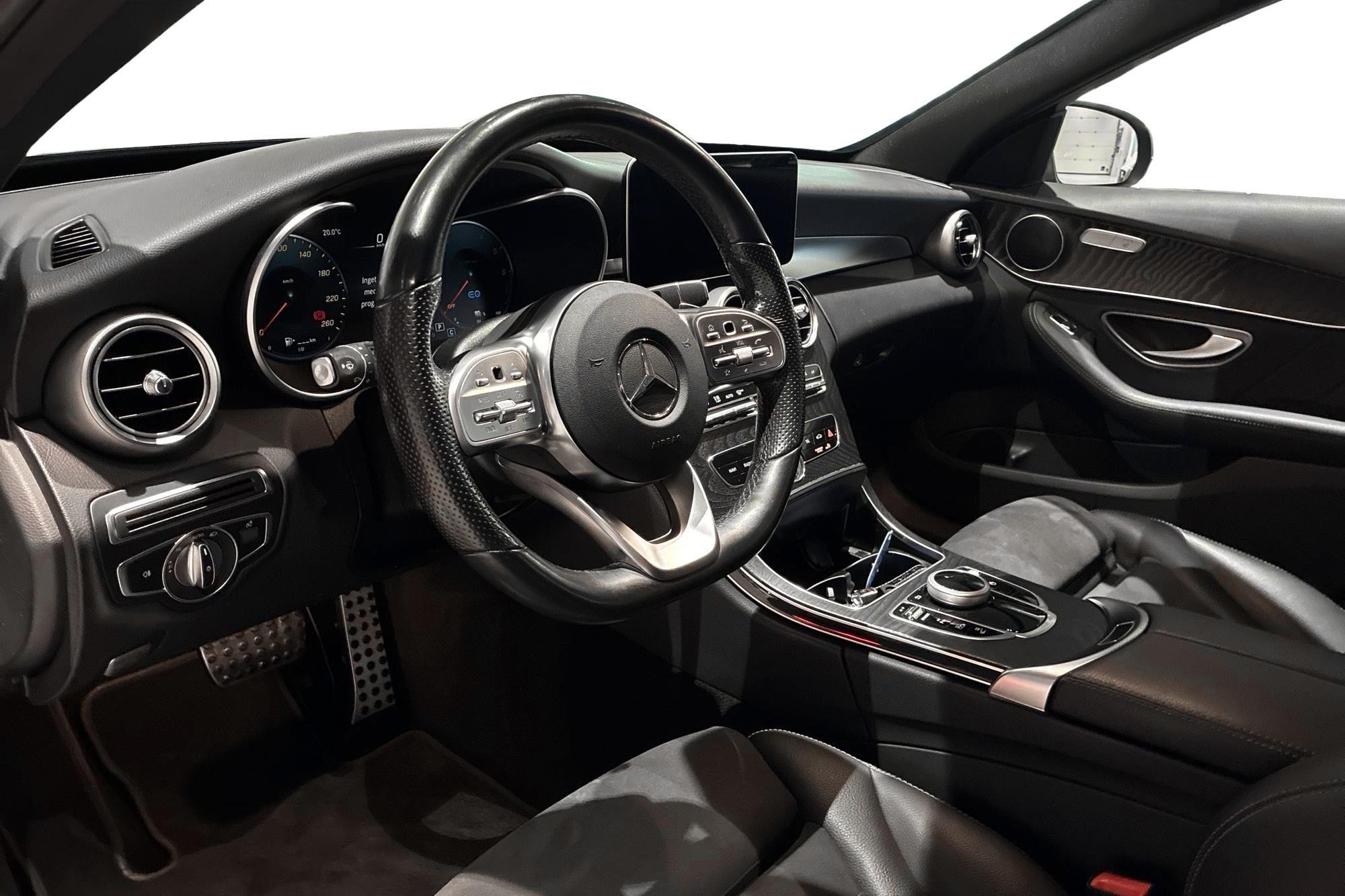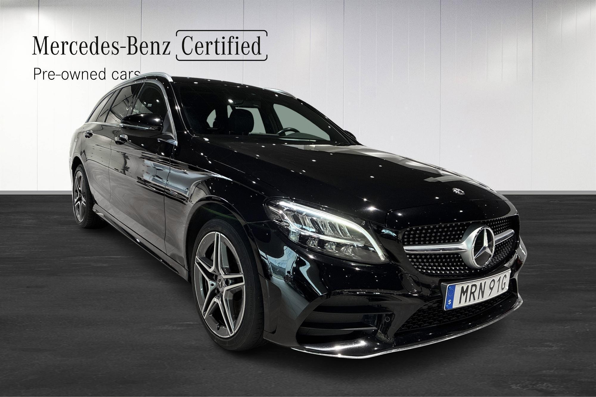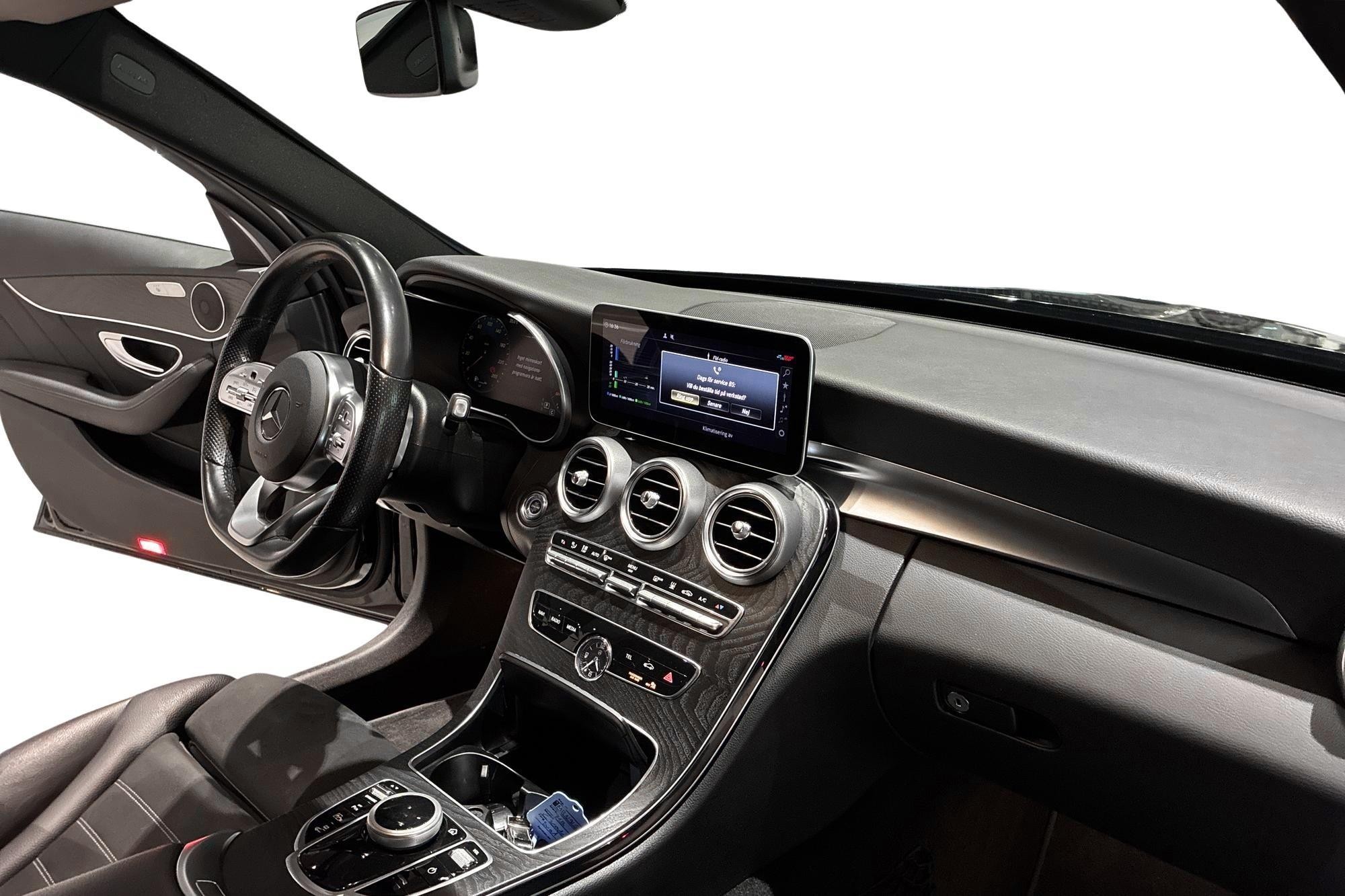 Mercedes-Benz C 300 de Kombi från 2020 i svart – en stilren och välutrustad laddhybrid som kombinerar premiumkänsla, dieselns räckvidd och eldriftens effektivitet. Bilen har gått 11 457 mil och erbjuder en komfortabel och smidig körupplevelse med automatväxellåda.