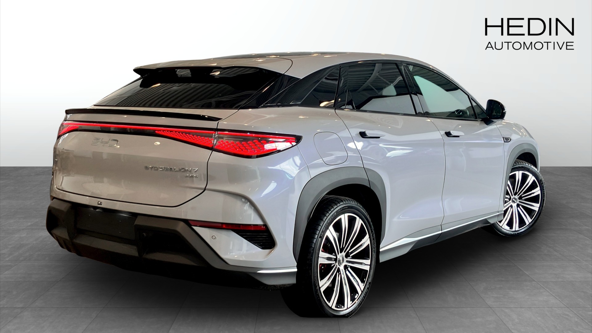 BYD SEALION 7 EXCELLENCE AWD 2025 i elegant Indigo Grey – en helt ny, rymlig och välutrustad el-SUV med noll mil på mätaren, redo för leverans från Hedin Automotive Varberg Holmagärde.