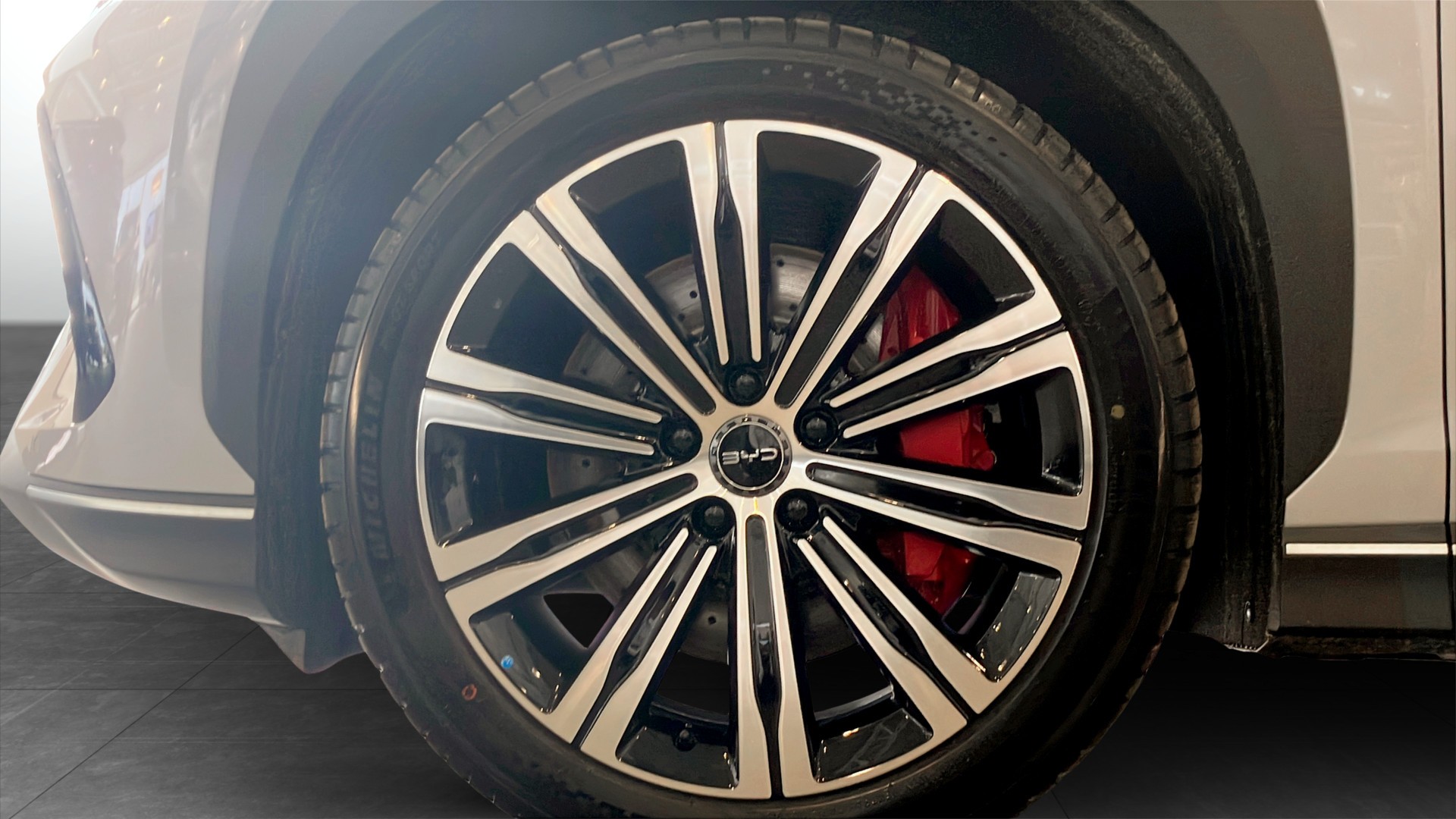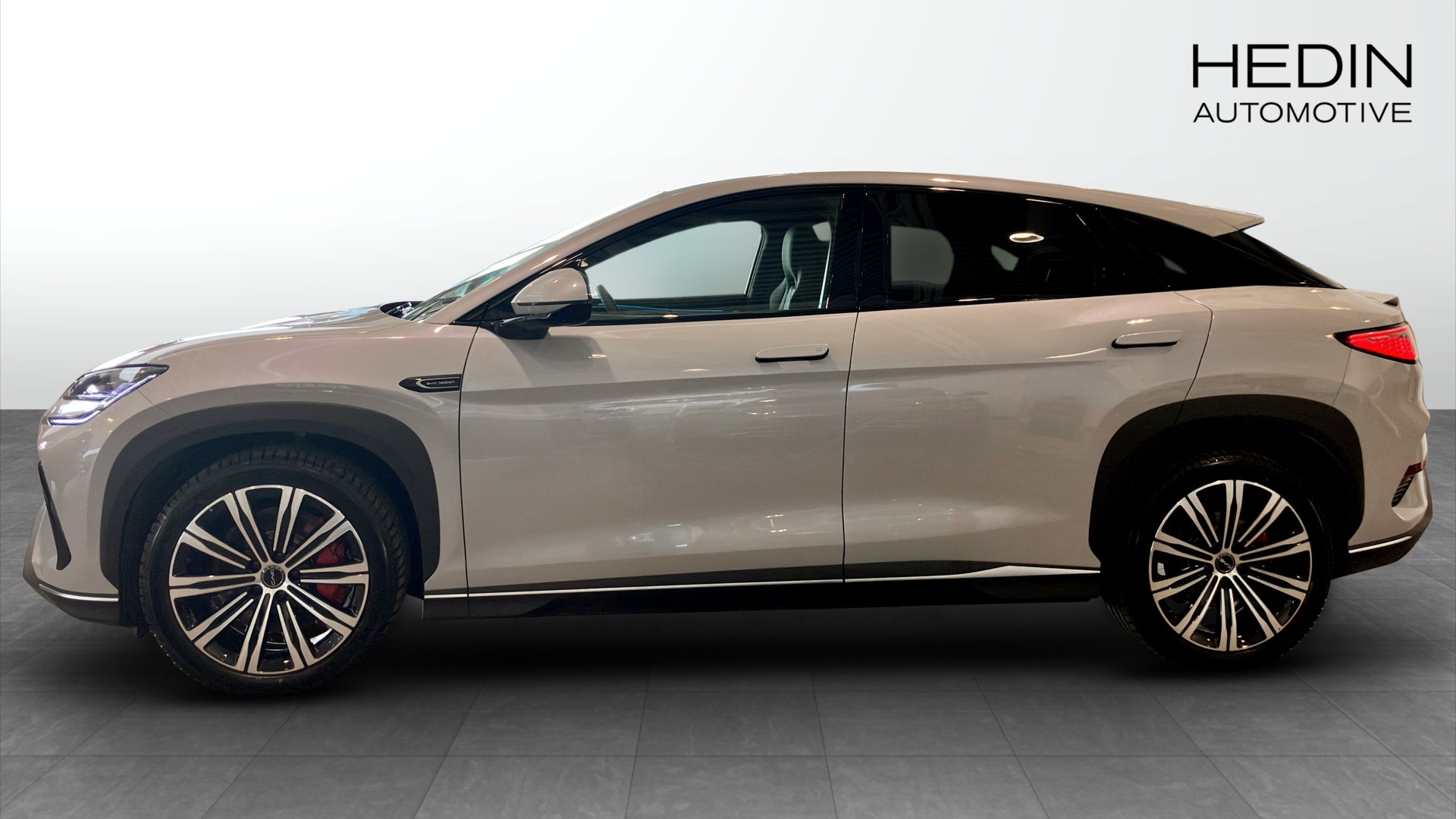 SEALION 7 är en modern och elegant SUV med grå kaross, 20" hjul (245/45 R20 runt om) och en rymlig kupé för 5 personer. Den generösa hjulbasen på 2930 mm ger gott om benutrymme, och säkerheten är i topp med 5 stjärnor i Euro NCAP.