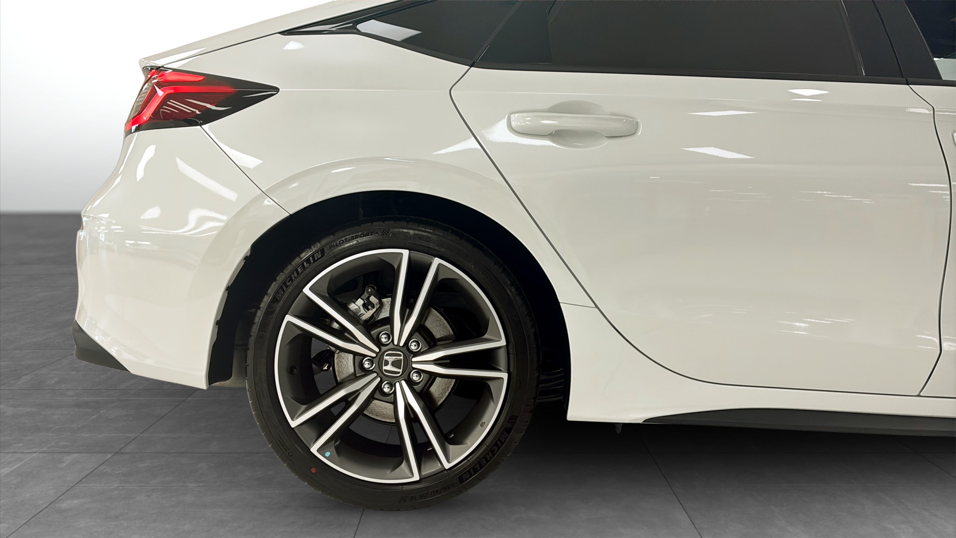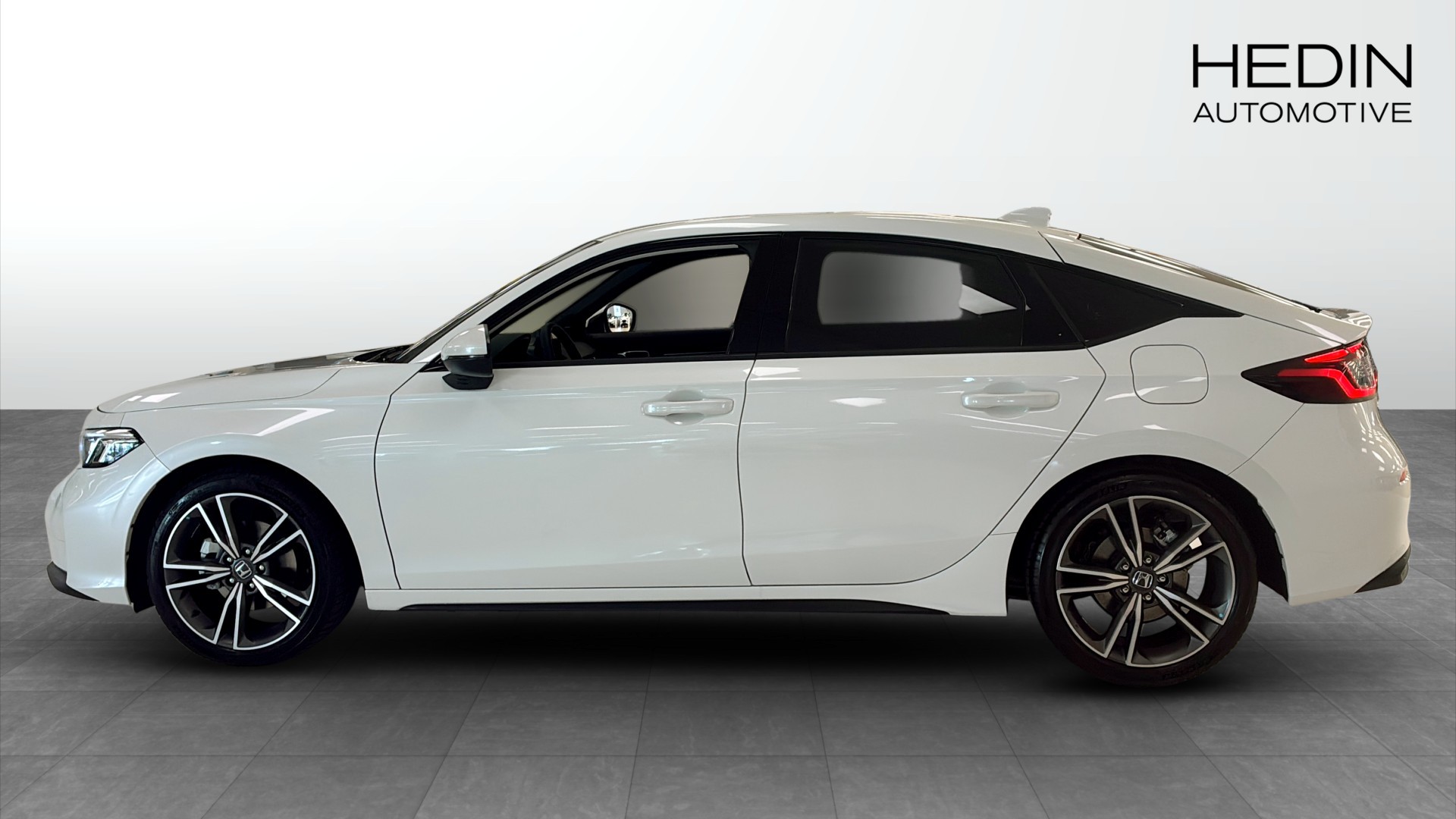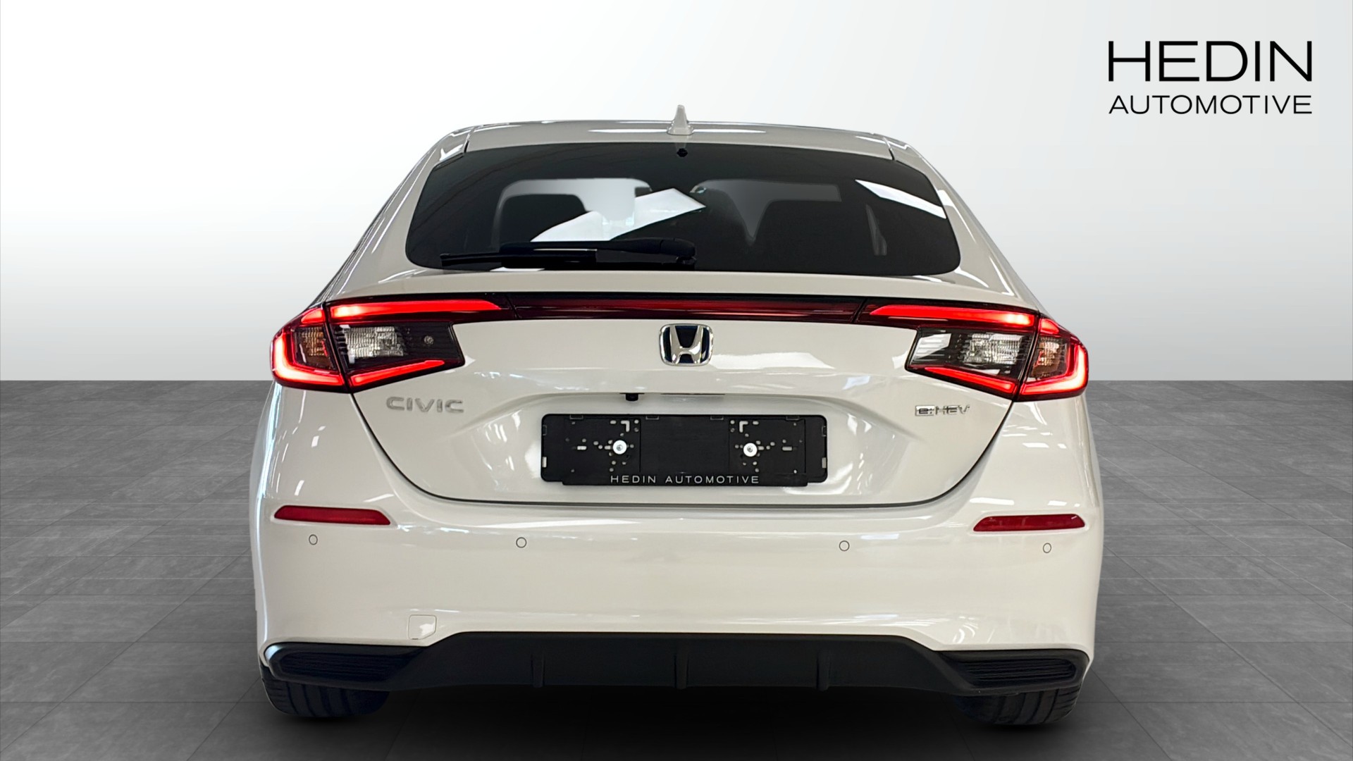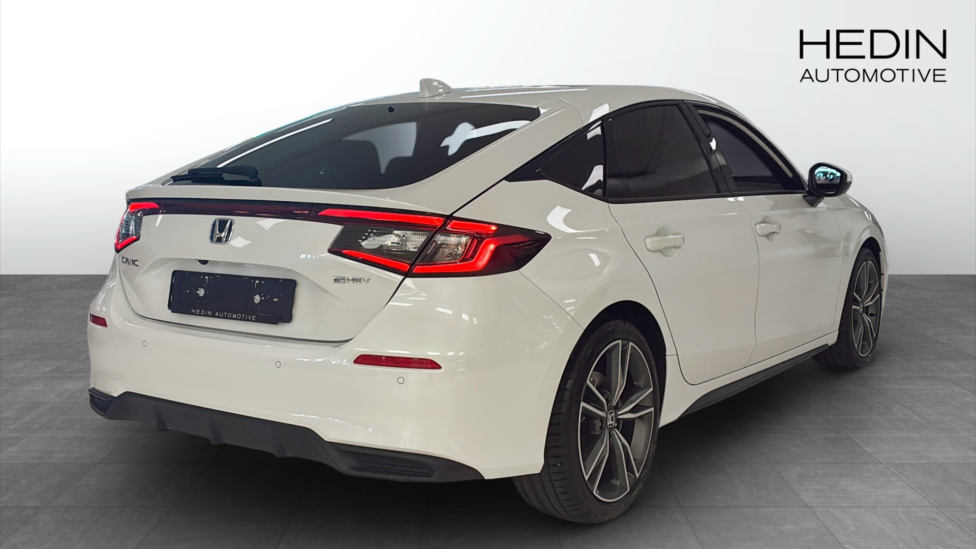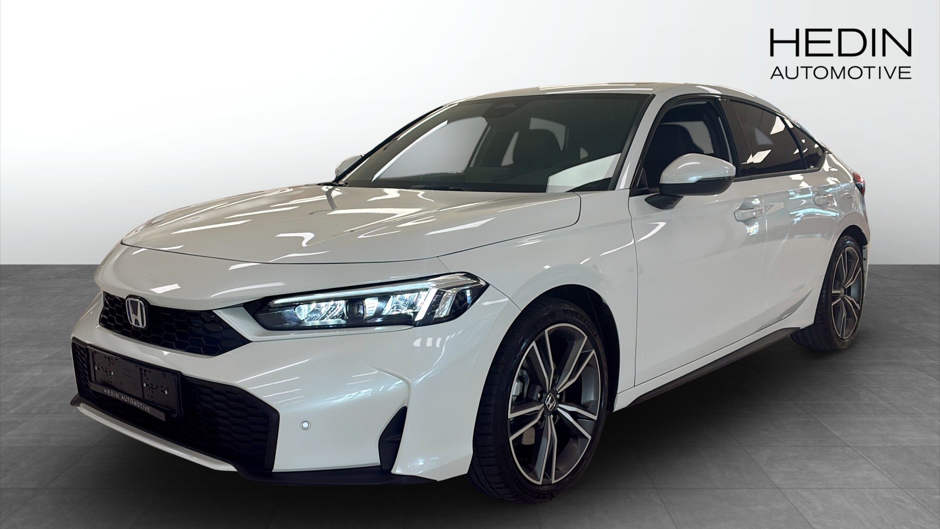 Honda Civic Advance 2.0 AT Hybrid i stilrena Platinum White Pearl. En modern och välutrustad hatchback som kombinerar sportig känsla med låg förbrukning och smidig vardagskomfort.