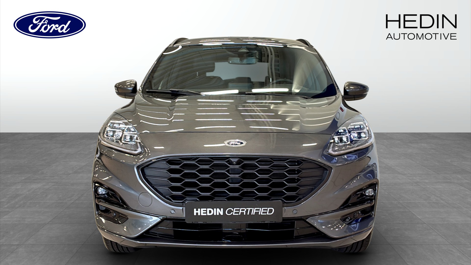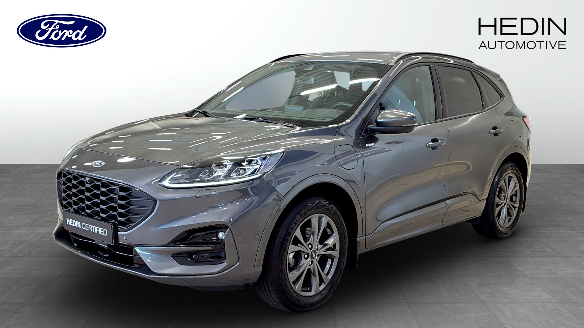 Ford Kuga ST-Line X Plug-in Hybrid Automat, årsmodell 2023, i snygg grå Metallic-färg. En modern och välutrustad SUV som kombinerar sportig känsla med låg förbrukning och smidig vardagskörning.
