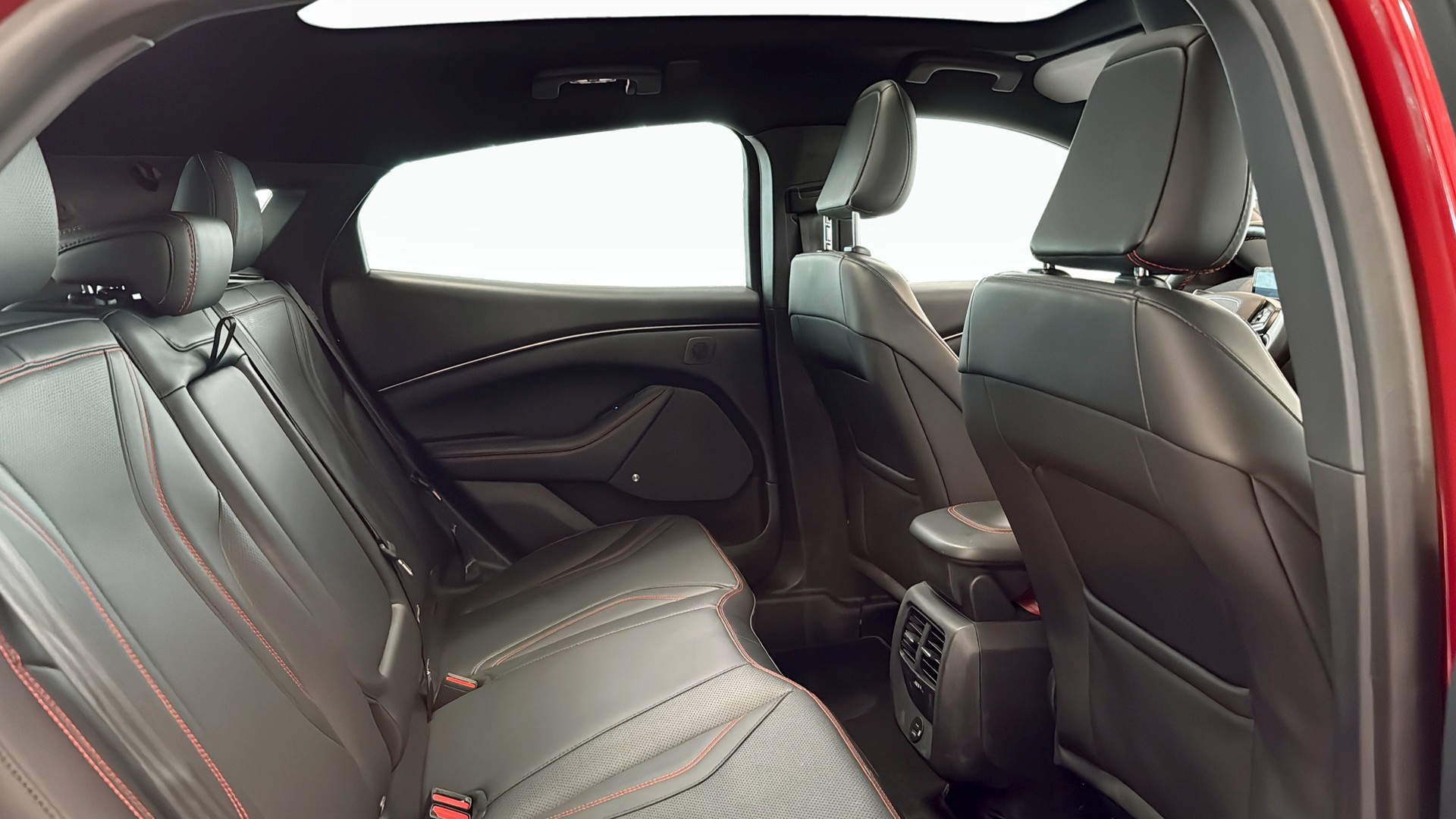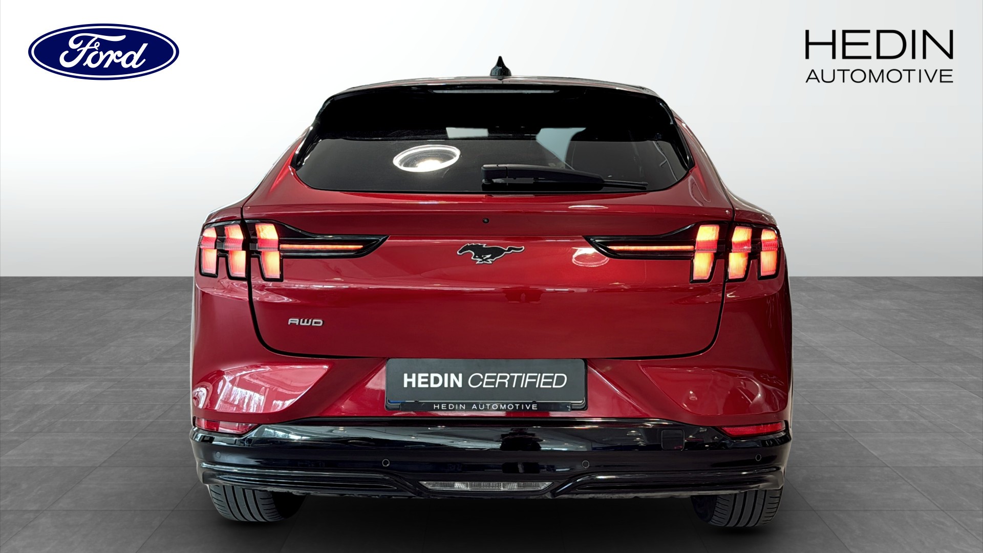 Ford Mustang Mach-E AWD Standard Range Teknikpaket+ i snygg Rapid Red – en helelektrisk SUV som kombinerar sportig känsla med hög komfort och smart teknik.