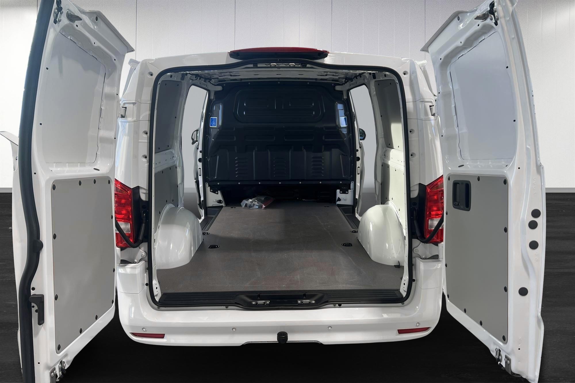 Kraftfull 190 hk dieselmotor med 9G-Tronic automat och permanent fyrhjulsdrift ger trygg körning året runt, dessutom HVO-kompatibel för den som vill köra mer hållbart. Lång version med 3200 mm axelavstånd, trägolv, inklätt lastutrymme, LED-belysning i skåpet och bakdörrar som öppnas 180 grader gör lastning och arbetsdagar smidigare.