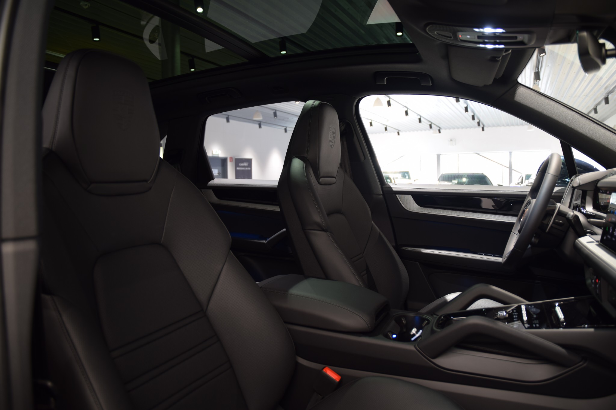 - Porschevapen präglade på nackstöd