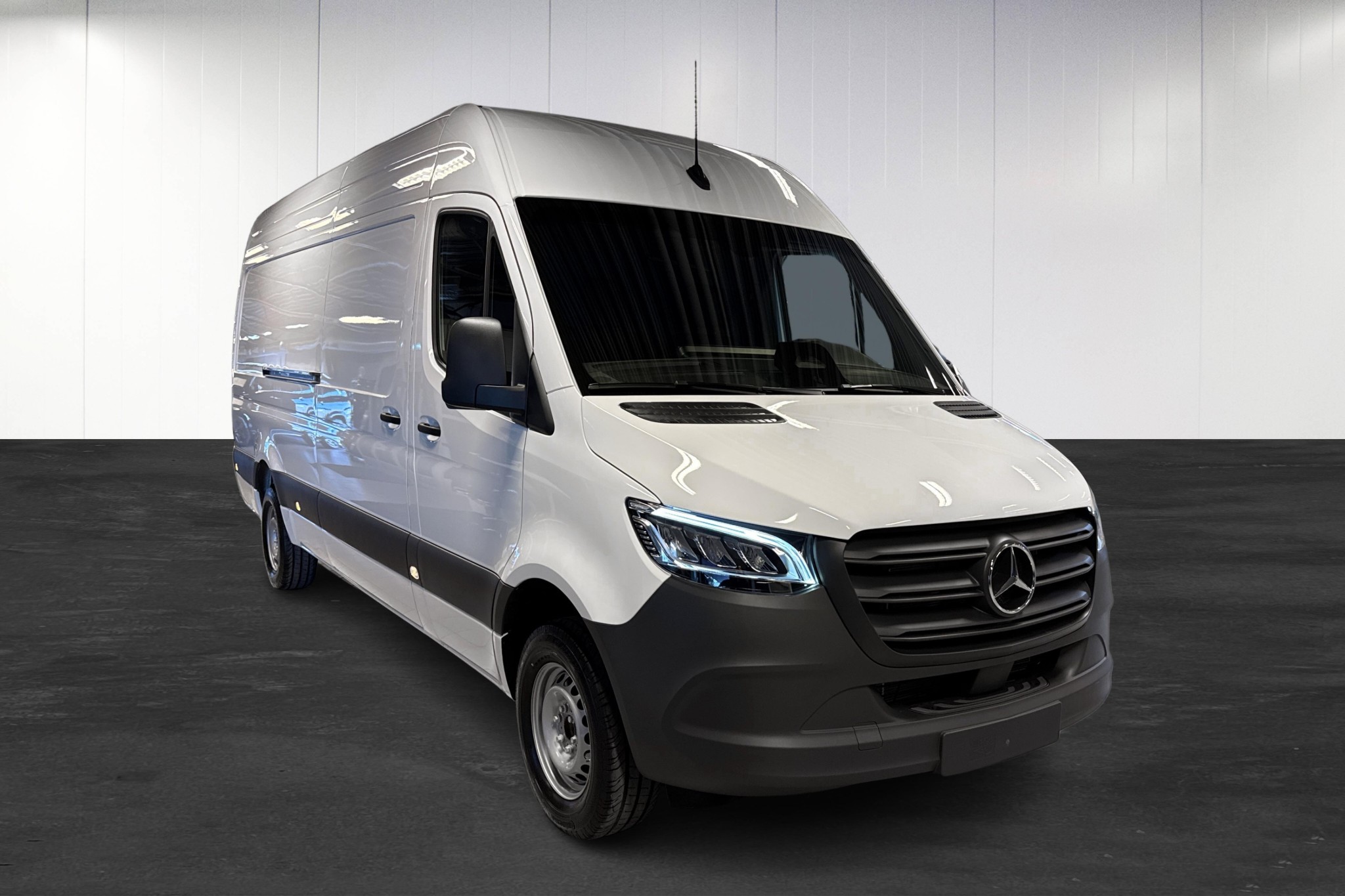 Mercedes-Benz Sprinter 317 CDI Skåp A3 PRO, årsmodell 2026 – en fabriksny, vit transportbil byggd för professionell vardag med fokus på komfort, säkerhet och lastkapacitet.