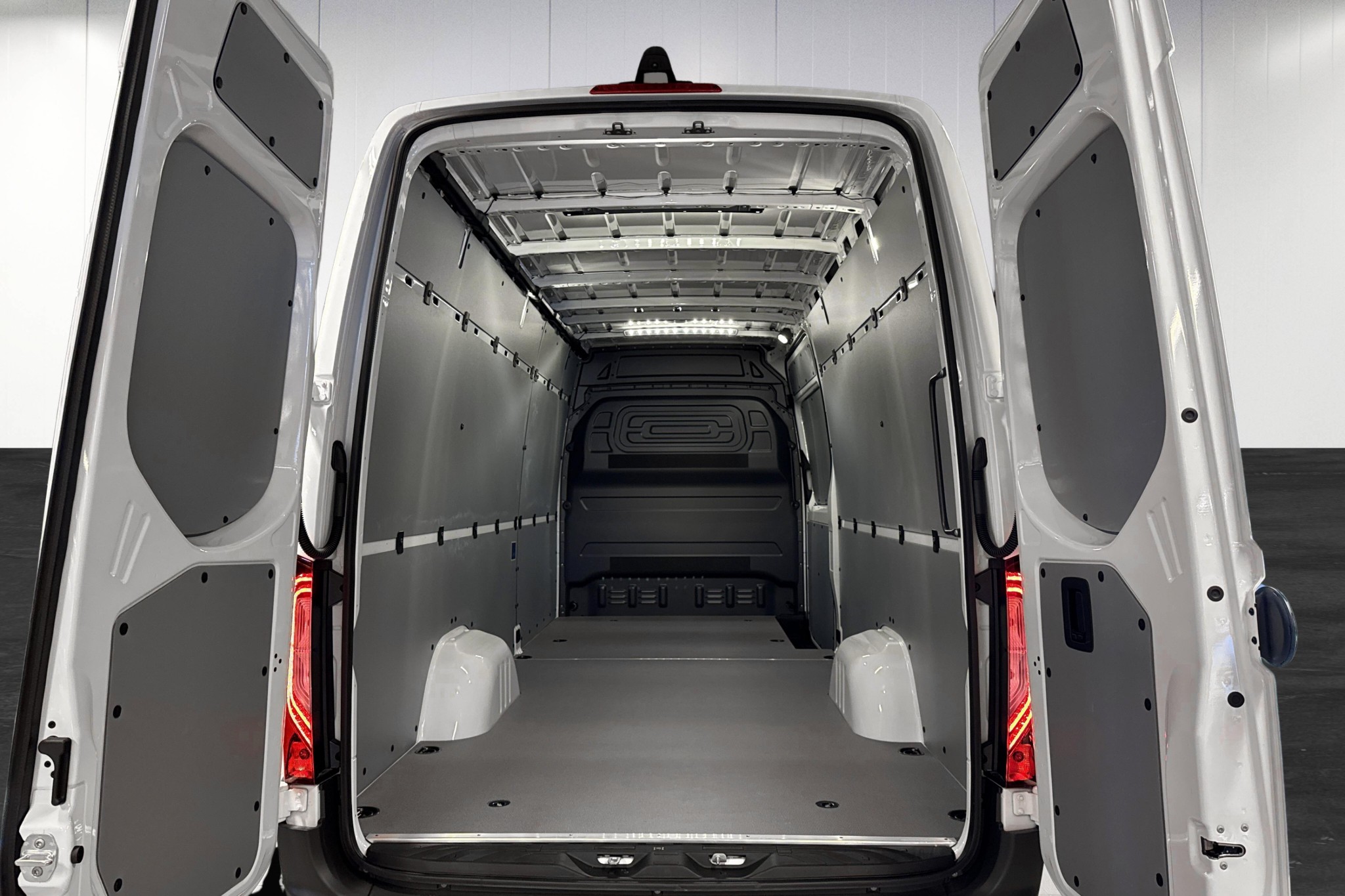 Under huven sitter en stark och bränsleeffektiv 170 hk dieselmotor med 9G-Tronic automatlåda och bakhjulsdrift, HVO-kompatibel och utrustad med stor 93-liters bränsletank. Den långa hjulbasen, höga taket, trägolv och inklädd bakvägg samt LED-belysning i lastutrymmet ger dig ett rymligt, slitstarkt och praktiskt lastutrymme – perfekt för hantverkare, bud och serviceföretag. Skjutdörr på höger sida, fotsteg bak, kabelkanaler och karossförstärkningar underlättar både inredning och daglig användning.