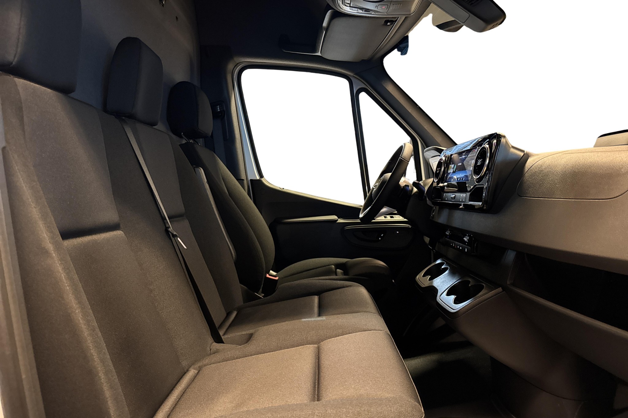 Föraren sitter extra bra i fjädrande komfortsäte med svankstöd, armstöd, läderratt och multifunktionsratt, ställbar i höjd och lutning. Kupévärmare med tidur, vinterpaket, eluppvärmda stolar och värmedämpande glas gör bilen optimal året runt. Dubbelt passagerarsäte ger plats för totalt tre personer.