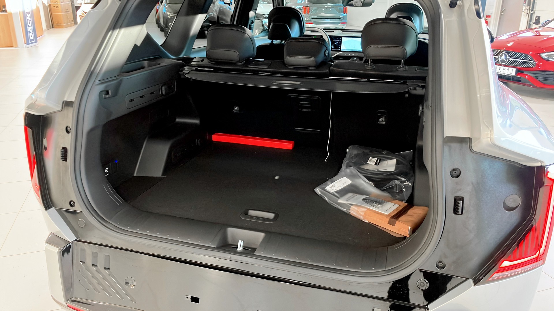 - Elhissar runt om, delbart/fällbart baksäte och insynsskydd