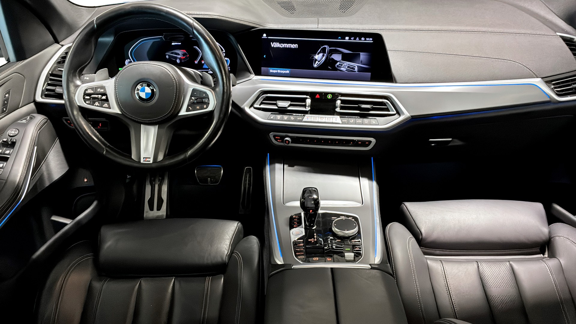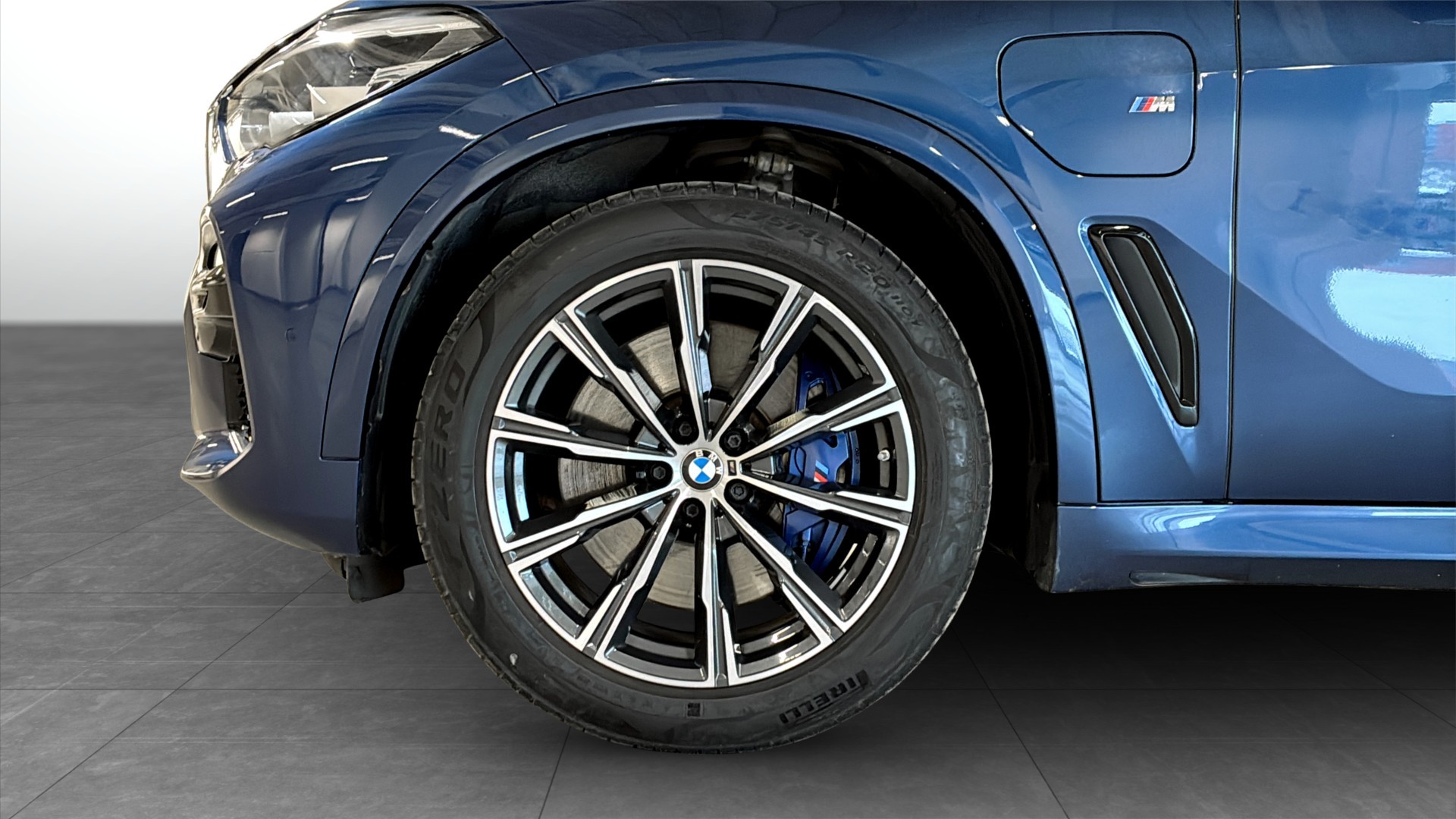 BMW X5 xDrive45e M Sport Innovation, årsmodell 2021, i läcker Phytonic Blå – en rymlig och sportig laddhybrid med fyrhjulsdrift som kombinerar kraft, komfort och låg förbrukning.