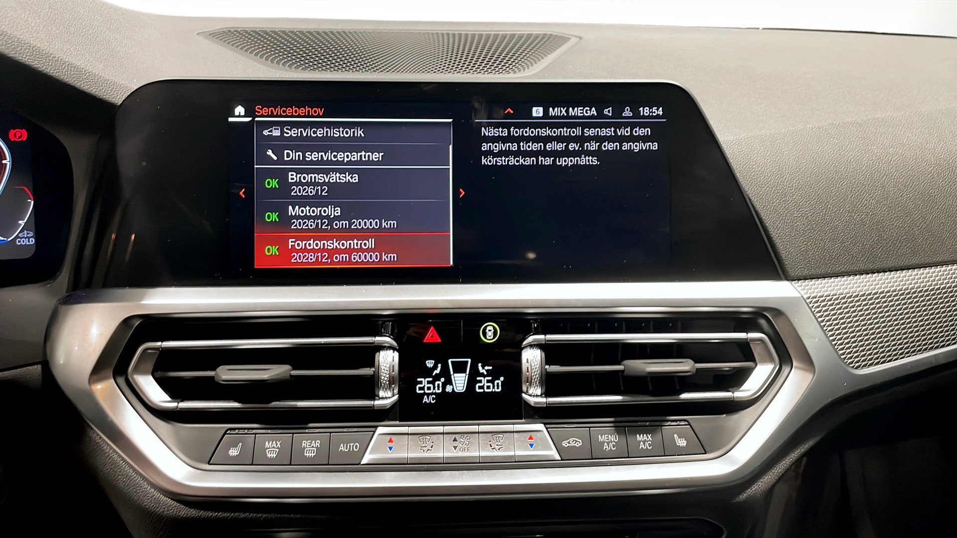 Säkerhets- och komfortmässigt är bilen fullmatad: adaptiv farthållare, körfilsassistans, döda vinkeln-varning, kollisionsvarning, autobroms, parkeringssensorer fram och bak, backkamera, LED-strålkastare, regn- och ljussensor, två klimatzoner samt sätesvärme fram. Även motorvärmare och både gummi- och textilmattor ingår. Besiktad till 2027-07-31.