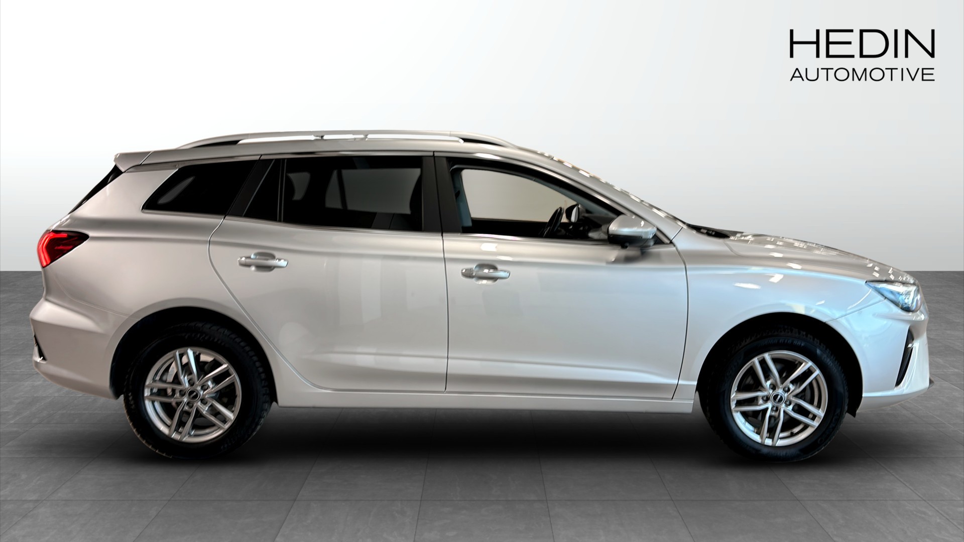 MG 5 Electric kombin 2022 i elegant grå “Medal silver” – en praktisk, helt elektrisk familjebil med riktigt bra räckvidd och låg miltal!