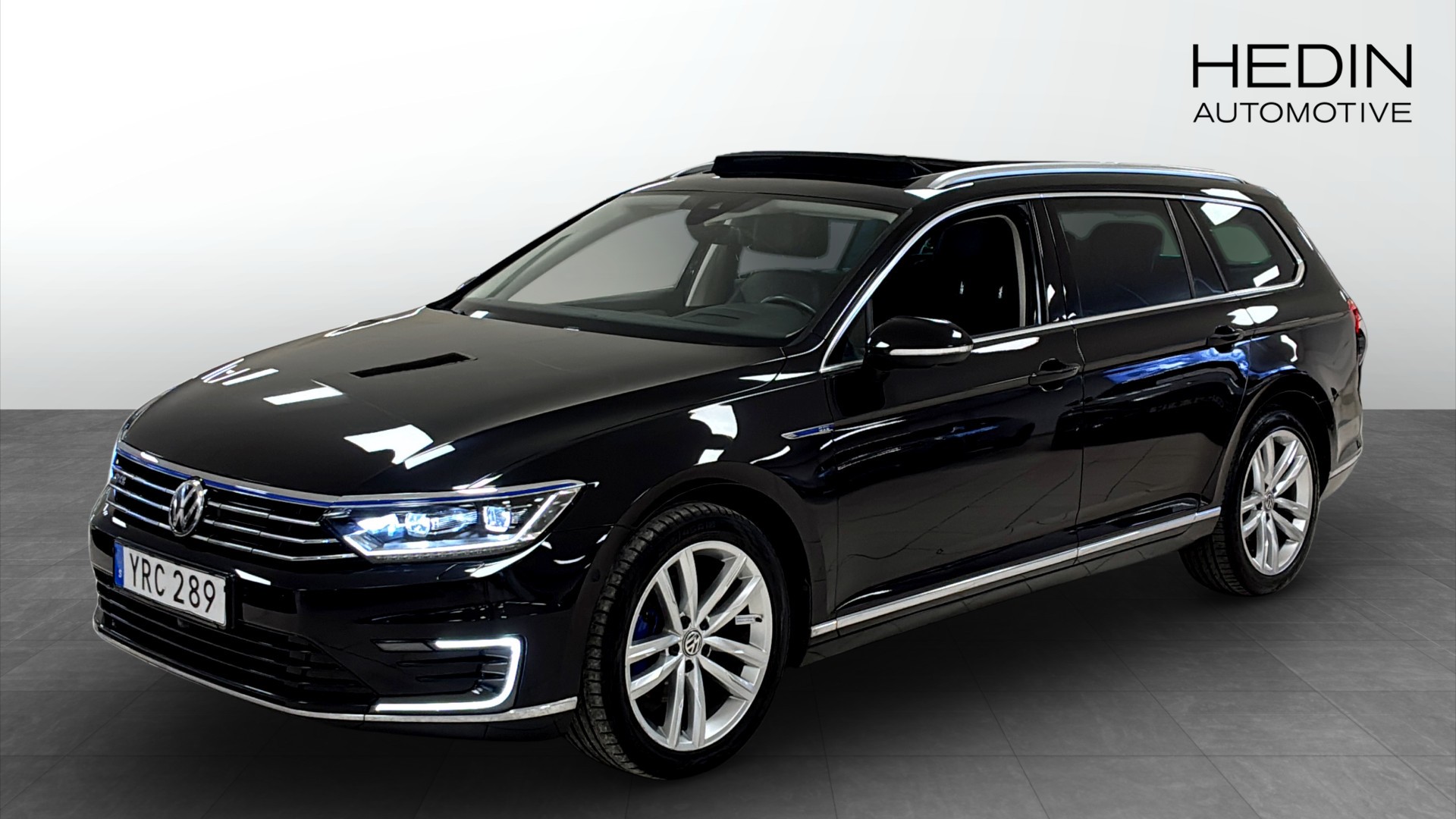 Volkswagen Passat Sportscombi GTE 1.4 TSI ACT DSG, årsmodell 2018 – en rymlig och komfortabel laddhybrid som passar både familj och tjänsteresor. Snygg i svart och med endast ca 9300 mil på mätaren.